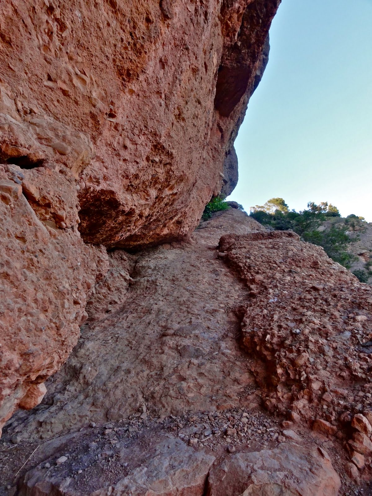 Però superada la meitat del recurregut, es troba la primera gran complicació: una roca redueix sensiblemente l'alçada del pas. El segon punt molt exposat és al final de la pujada.