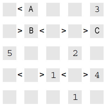 To get the coordinates of the cache, you have to solve the magic square below - the objective is to place the numbers between 1 and 5, such that each row, and column contains each of the digits 1 to 5, while at the same time constraints (< and >) between numbers must be honoured.