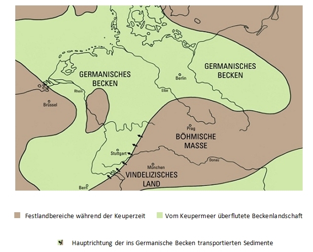 Da in das Germanische Becken durch Flüsse Tone und Sande eingeschwemmt wurden, wechselten die Lagen des Sandsteins mit Rogensteinvorkommen mit Sand- und Toneinlagerungen ab.