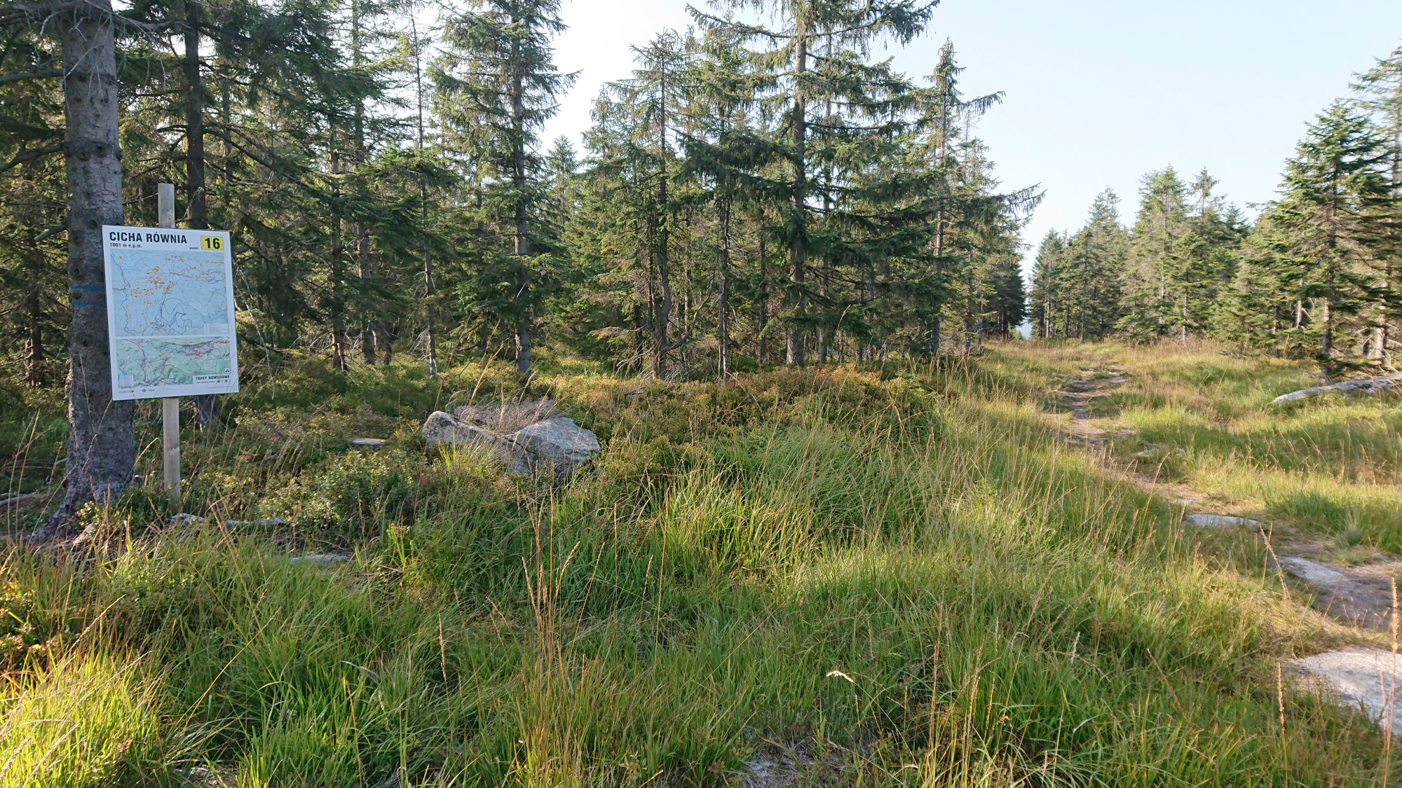 Cicha Równia (německy Theisenhübel ; česky Tichá rovina) je vrchol nacházející se v západním výběžku Vysokého jizerského hřebene, v polské části Jizerských hor. Spolu s na západ ležícím vrcholem Krogulec (1001 m) tvoří oblé a rozložité návrší oddělené od sebe mělkým sedlem. Velmi nevýrazný vrchol označuje žulový mezník zapuštěný do země pod mysliveckým posedem. Zhruba 1 km severně od vrcholu se nalézá rozcestí Rozdroże pod Cichą Równią což je bývalá křižovatka Staré sklářské cesty (Stara Droga Szklarska) s cestou nazývanou Dukt Końskiej Jamy. Ve své době to bývaly jedny z nejdůležitějších cest v této části Jizerských hor. Asi 1 km jihovýchodně od vrcholu je městečko Jakuszyce, centrum běžeckého lyžování na polské straně Jizerských hor. Pro běžkažské tratě jsou využívány mj. četné průseky na Cicha Równia a Krogulci. zdroj: Wikipedia, http://cs.wikipedia.org/wiki/Cicha_R%C3%B3wnia