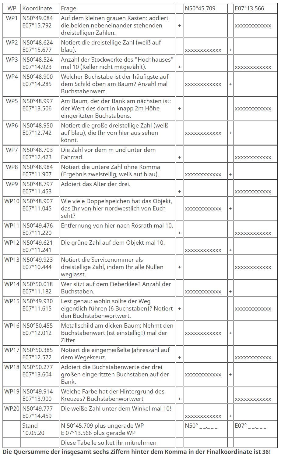 Die Quersumme der insgesamt sechs Ziffern hinter dem Komma in der Finalkoordinate ist 36!
