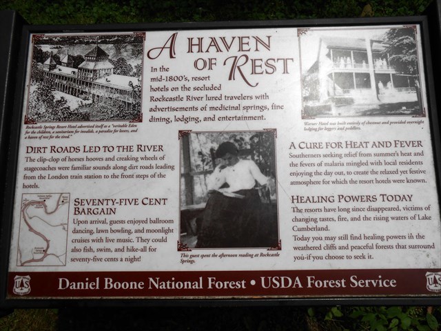 Several miles downstream, the Rockcastle Springs Resort Hotel was one of Kentucky's most popular, oldest and most successful resorts. Upstream, at the confluence of Cane Creek, was the Warner Hotel. Very popular in the 1900s, this two-story structure was built entirely out of chestnut wood. A trail from the Laurel County side of Bee Rock will take you to the area.