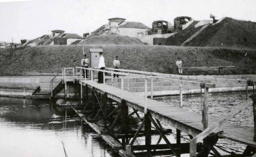 1917. Sydlige del af fortet set fra den træbro, der fra 1917-1953 forbandt fortet med land.