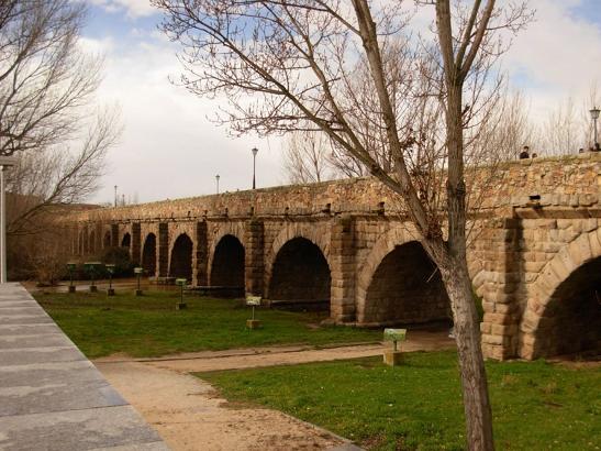 Data del siglo I y es uno de los iconos de la ciudad, siendo tan sólo superado en antiguedad por el verraco de origen vetón. Aunque ha sufrido varias reconstrucciones importantes, gran parte del puente aún conserva su origen romano primigenio. Tuvo un castillete en el centro y almenas en sus laterales, pero estos elementos fueron eliminados en la reconstrucción de 1627. También tuvo, en la parte vieja del puente (la parte del centro de la ciudad), un saliente sobre el que se situó el verraco, aunque luego éste se movió a la parte central del puente, para acabar ahora sacándose del mismo