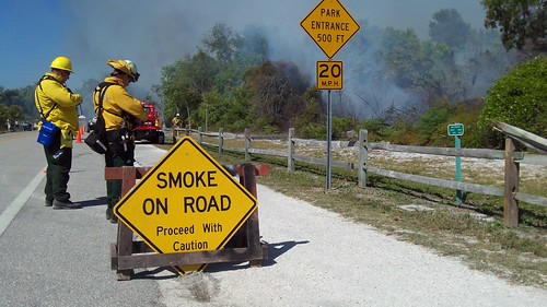 In March of 2011, the Manatee County Natural Resources Department’s rangers teamed up with staff from DeSoto National Memorial, West Manatee Fire Department, and the Department’s own volunteers in order to conduct a prescribed burn at the site. Why intentionally set the landscape on fire? Fire is an important part of Florida’s natural cycle. Especially in the scrub habitat, fire is necessary for plants to grow, seeds to sprout, to eliminate built up piles of fuel, and to maintain the habitat for the resident wildlife.