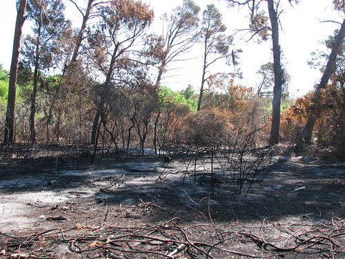 The first listed coordinates will take you to one of the photopoints for the burn. These points were established immediately following the burn in order to track the progress of growth at different sites within the burned area. A total of five points were set, and each month volunteers Rob Hamilton and Vicki Jarratt visited the points and photographed the re-emergence of vegetation at the site and the changes to the landscape.
