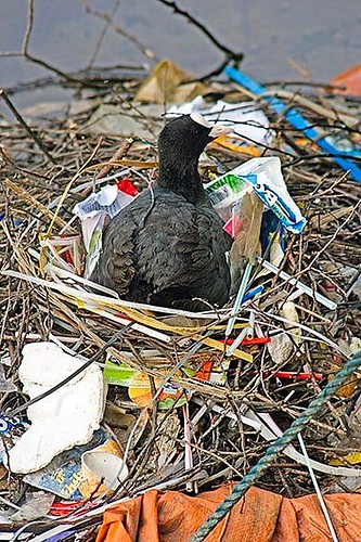 Example of a bird using trash to build its nest. Photo by Phil Holden