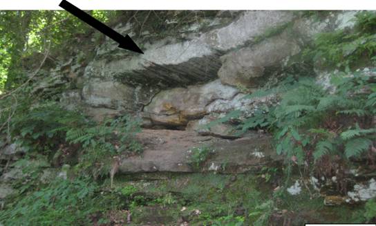 Figure 1. Ripple marks in rock about 20 feet above the trail. Photograph by: L. Smith