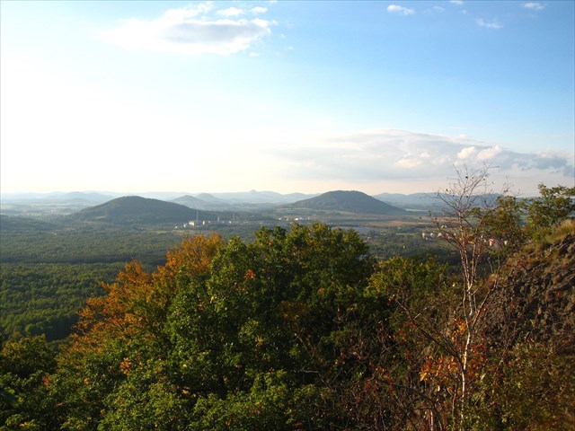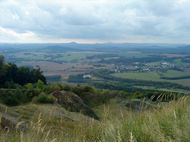 Výhled z Tlustce - v pozadí je Brniště, Brništský rybník a Jáchymov:
