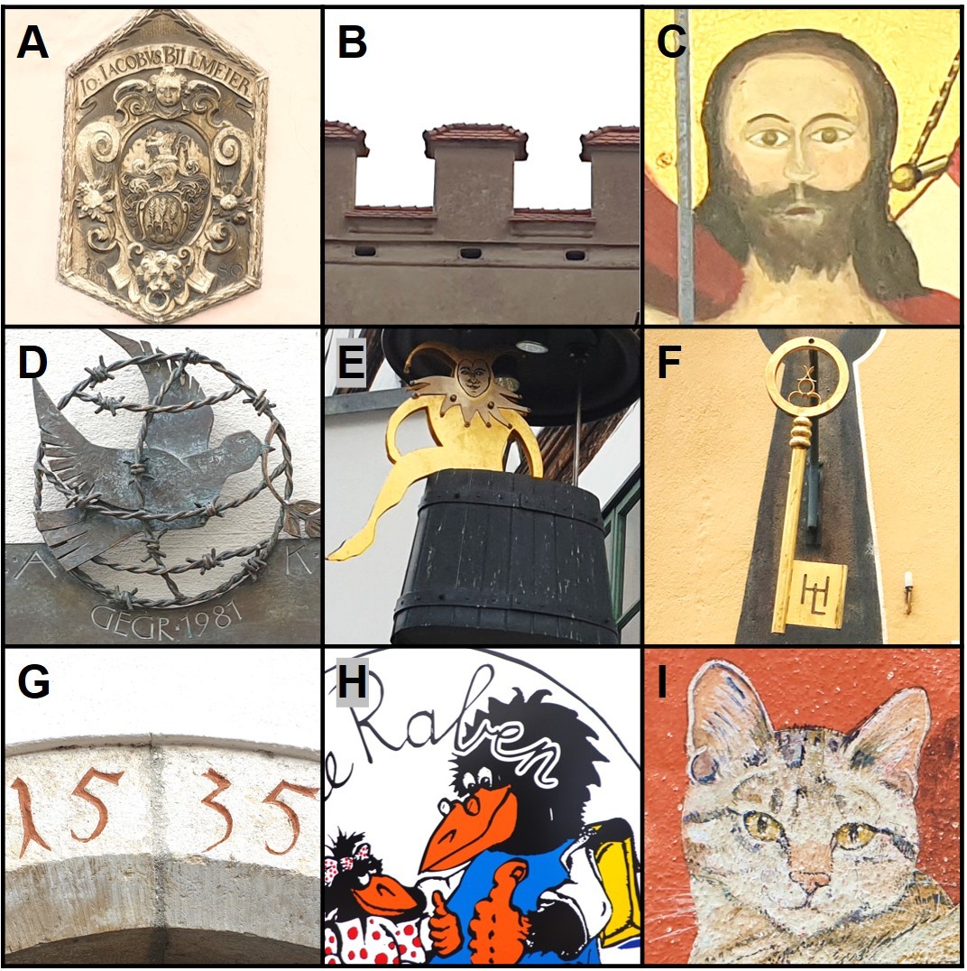 Hinweis: Der Rabe (Bild H) kommt als 4. Bild auf dem Rundweg, ist derzeit aber nicht an seinem Platz an der Grundschule am Graben.