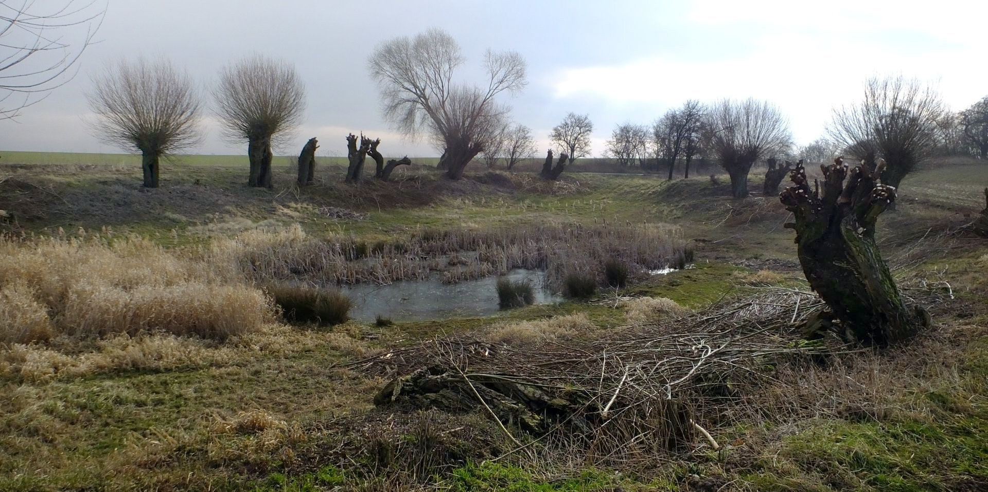 Staré vrby mezi rybníkem a cestou