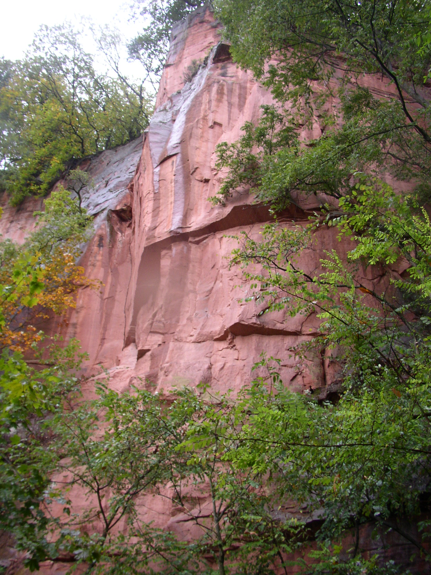 Stage 2: Hier seht Ihr den Sandstein auf dem Ihr eben gestanden habt. Hier könnt Ihr die Mächtigkeit der Aufschichtung von Sedimenten erkennen.
