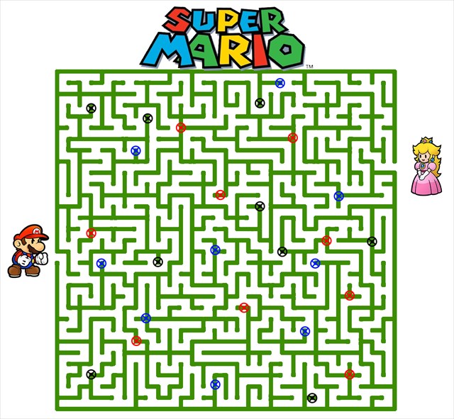 Για να λύσετε αυτή την κρύπτη, πρέπει να οδηγήσετε τον Μάριο στην πριγκίπισσα Peach. Κατά την διάρκεια κρατήστε σημειώσεις για το πόσες χρωματιστές βαλβίδες συναντήσατε. Στη συνέχεια, λύστε τη παρακάτω εξίσωση για να βρείτε τις τελικές συντεταγμένες.