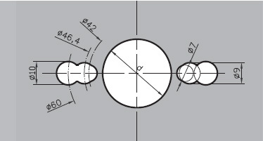Nejběžnější upínací průměr pro truhlářské a formátovací pily je 30 mm. Někteří výrobci mají vedle hlavního hřídele ještě dvojici unášecích čepů, podle nichž musí být v kotouči vyrobeny příslušné otvory. Unášecí otvory mají průměry 8, 9 a 10 mm a jsou vyvrtány na kružnicích o průměrech 42, 46,4 a 60 mm. Aby se výroba více unifikovala, začaly se na kotoučích místo příslušných unášecích otvorů vypalovat univerzální otvory ve tvaru „hrušky", aby se kotouč dal upnout zároveň do všech tří upínacích systémů (obr 4). Předřezové kotouče mají upínací otvory 20, 22 a 30 mm. Pilové kotouče pro ruční elektrické pily mají hlavní upínací otvor o průměru 18, 20 a 30 mm a zpravidla jsou opatřeny i unášecími otvory o průměru 7 mm na kružnici průměru 42 mm.