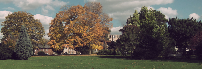 It's a really lovely park here on a sunny day, with picnic tables, a goldfish pond, and flowers at the right time of year.