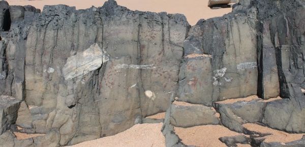 This this outcrop of Tillite appears to have to have evidence of lava layer as well. From the studies of the geology of Kwazulu-Natal it is stated that there was a significant period of unique igneous activity following Gondwana breakup, That formed numerous volcanoes of kimberlite rock, commonly known to contain diamonds. Unfortunately, the kimberlite pipes of KwaZulu-Natal have not yielded any significant diamonds. This is due to the kimberlites having originated from beneath the Natal Metamorphic Province.