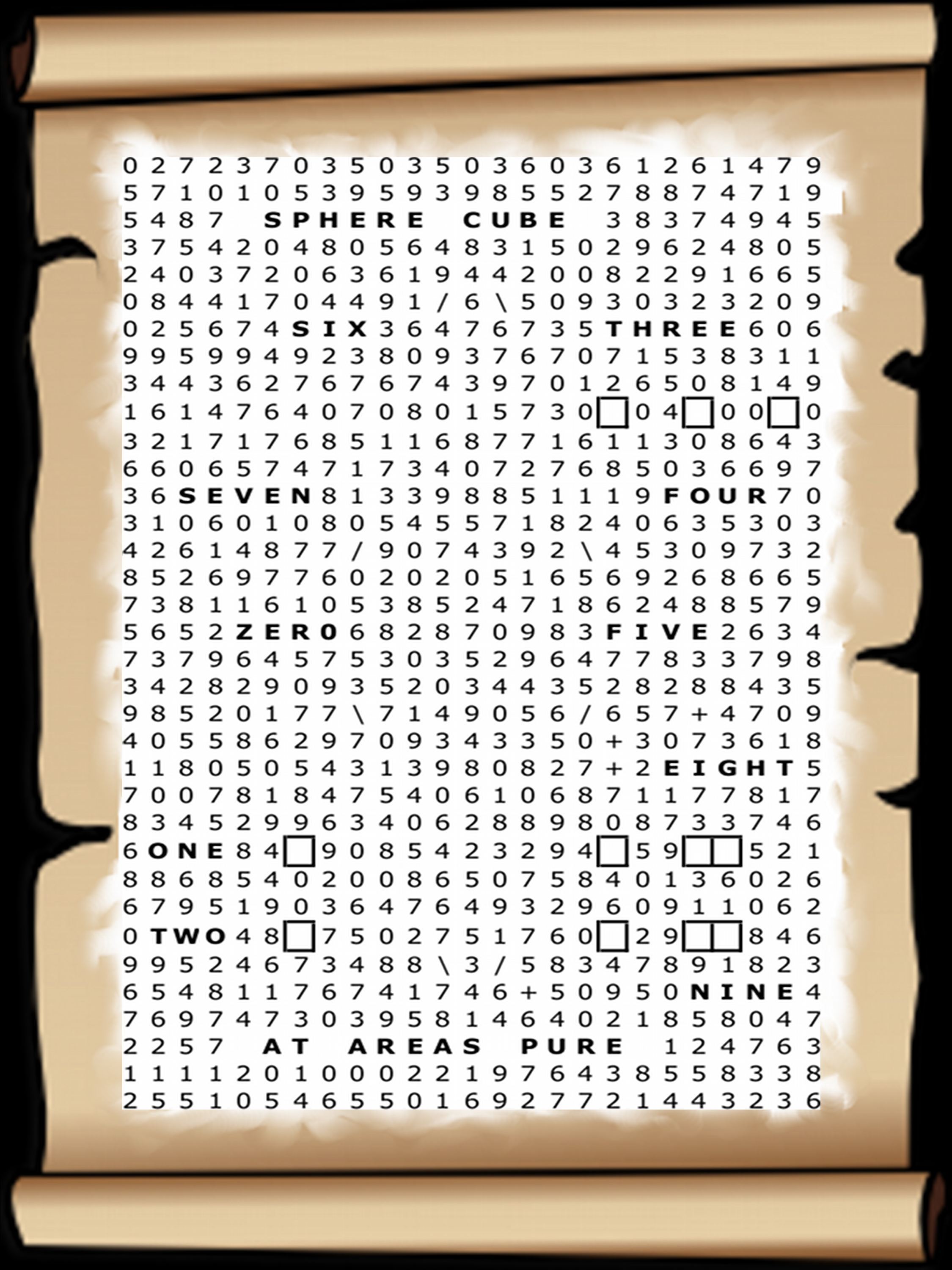 Your adventure began innocently enough. You were spending some idle hours thumbing through dusty old tomes in an antique book store. The three-volume atlas caught your attention - you have always found maps fascinating. You were perusing the old charts of Caribbean islands, and had just turned the page between Antigua and Barbados, when a parchment scroll fell to the floor. You retrieved the faded document and were immediately intrigued by the cryptic numbers and letters that filled it. At that point you were hooked. You promptly purchased the atlas and its enigmatic parchment and went home to solve the puzzle of the Mysterious Scroll.