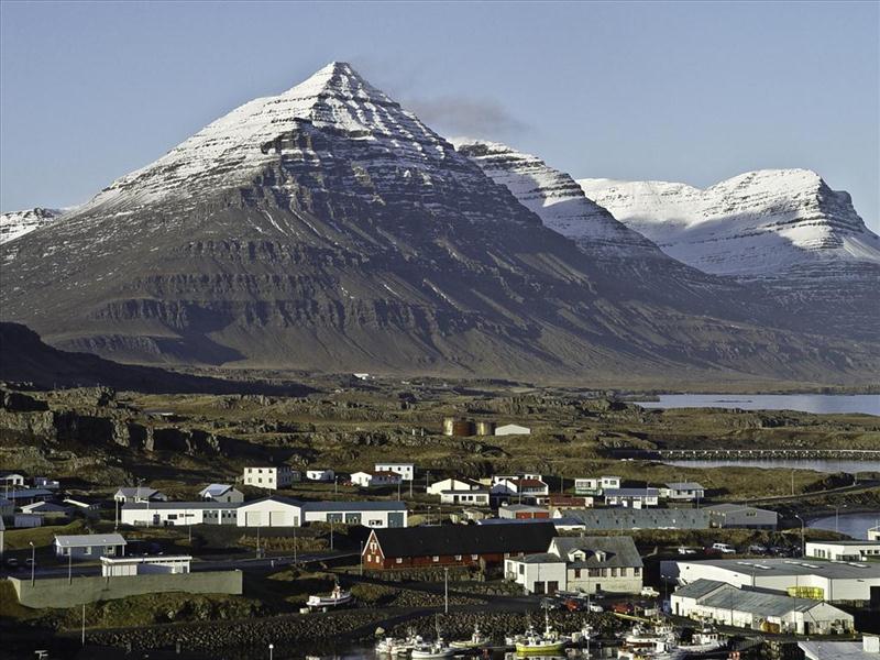 From this hill you will have an amazing view over the town i grew up in with the pyramid shaped Búlandstindur in the background.