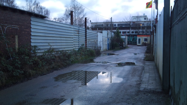 Hier an dem Seitenarm der Dahlhauser Straße hat sich so mancher kleiner Gewerbebetrieb angesiedelt, ganz am Ende befindet sich ein Recyclingbetrieb.