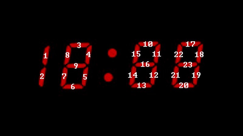C = Which LED segment is lit the longest time in any 12 hour period? (use figure below)