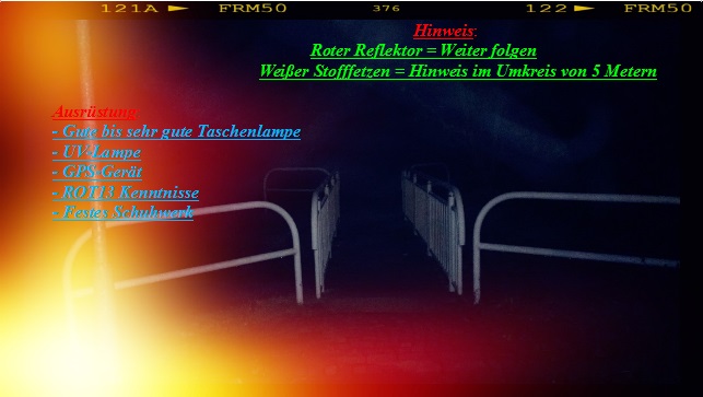Falls Du diese Cacheidee nicht weiterverfolgen möchtest, denke bitte daran eventuellen Geomüll (Cachebehälter, Zwischenstationen) wieder einzusammeln.