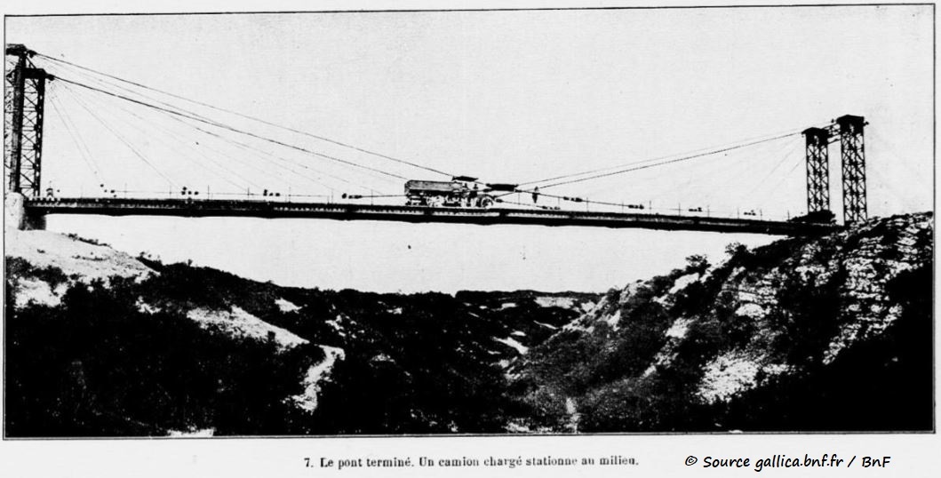 The Gisclard bridge was built here in June and July 1923 by the 7th engineer regiment The chosen obstacle consists of a ravine which deeply cuts the plateau located west of the Villeneuve polygon. The width of the ravine at the location in question is approximately 60 m, its depth exceeds 20 m; the walls are rocky and steep.