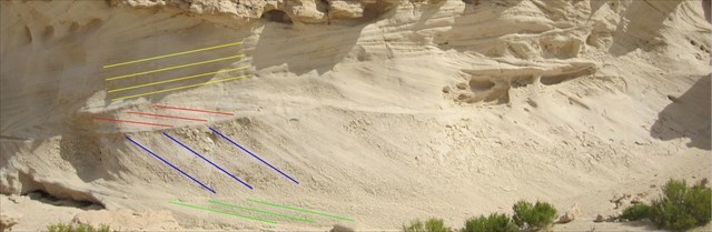 4. Looking at the cross bed layers, why do you thing is there such a difference in the angles of bedding