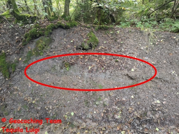Begebt euch an die im Listing angegebenen Koordinaten und schaut euch das Bachbett an (Die Schicht kann auch im Bachbett in der Nähe der Cachekoordinaten gesehen werden).