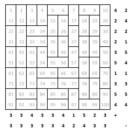 Diesmal geht es um Magnete. Diese sind ja bekanntlich zweipolig. An jedem Magnet ist natürlich sowohl ein "+" als auch ein "-". Angrenzende Magnetfelder sind im gegensätzlich. In den beiden folgenden Rätseln sollt ihr die Felder so ausfüllen, das die darunter bzw. rechts vom Rätsel stehenden Anzahlen der in der jeweiligen Spalte/Zeile vorhandenen Plus- und Minuspole im Rätsel eingetragen sind. Zählt anschließend alle Zahlen, die nach gelöstem Rätsel einem Pluspol zugeordnet sind, zusammen. Die Summe des ersten Rätsels sei dabei x, die des zweiten y. Diese beiden Ergebnisse solltet ihr in die Finalberechnung einsetzen. Zur Sicherheit könnt ihr das Ergebnis natürlich im Checker überprüfen.