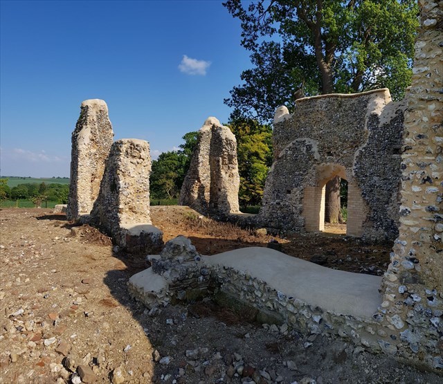 In 2022 Natural England funded major conservation repairs through the Countryside Stewardship Scheme. The area around the church has been cleared and repairs to stabilise the walls and arch have been completed to ensure the future of the chapel is secure.