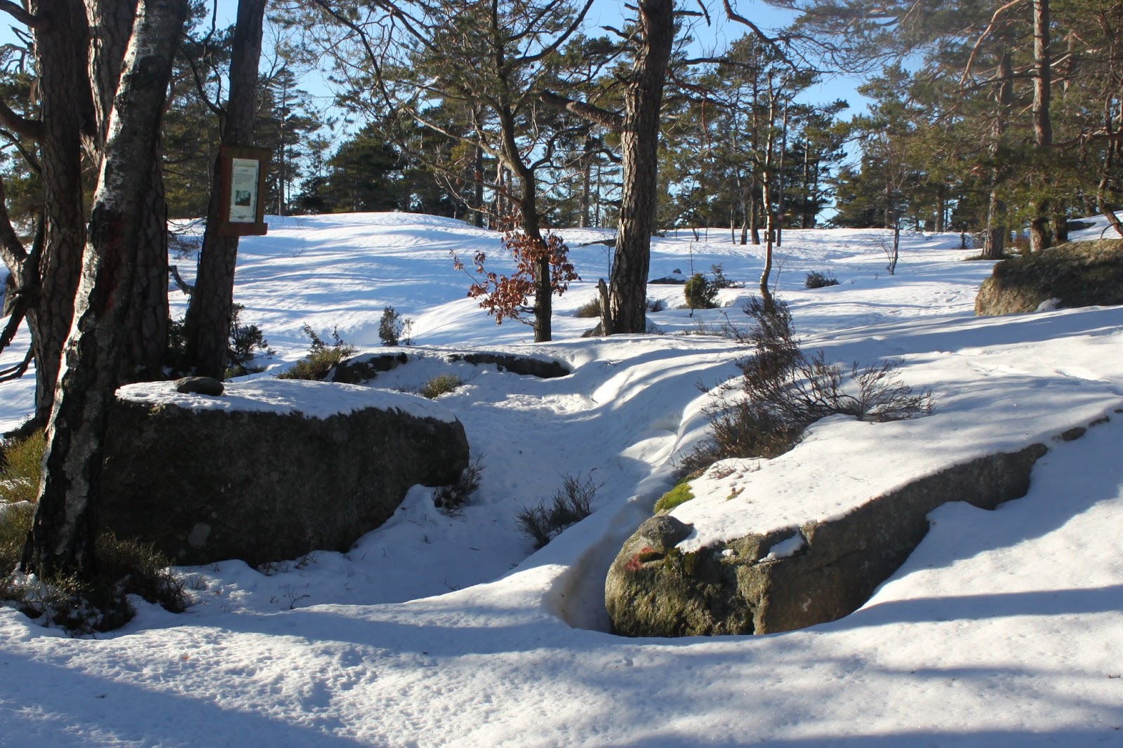 Her går Allmannavegen mellom store flate steiner. Et sted det var naturlig å ta en rast siden steinene gjorde det lett å komme seg ned av hesteryggen.