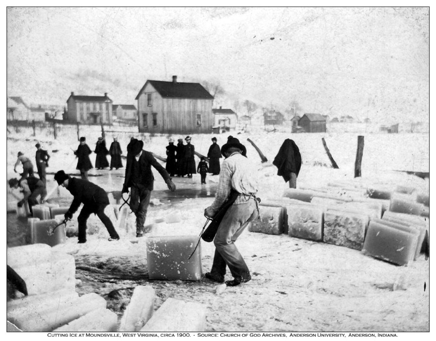 During the winter, workmen from the Roosevelt estate would cut large blocks of ice from the pond you are standing next to.  The workmen would put the ice onto horse-drawn sleighs or wagons and take them up the hill to the ice house near the stable.  The blocks of ice would be packed in straw or sawdust in the ice house and would last until the following winter.  This ice would be used to keep food cold in an icebox, located in the kitchen, long before refrigerators were invented.