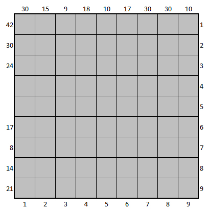 Jedes Feld hat also zwei Werte, je nachdem, ob man die Felder zeilenweise oder spaltenweise summiert.