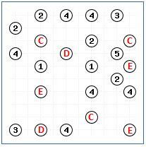 2) Substitua os algarismos obtidos (A a F) nos 4 níveis de Bridges.