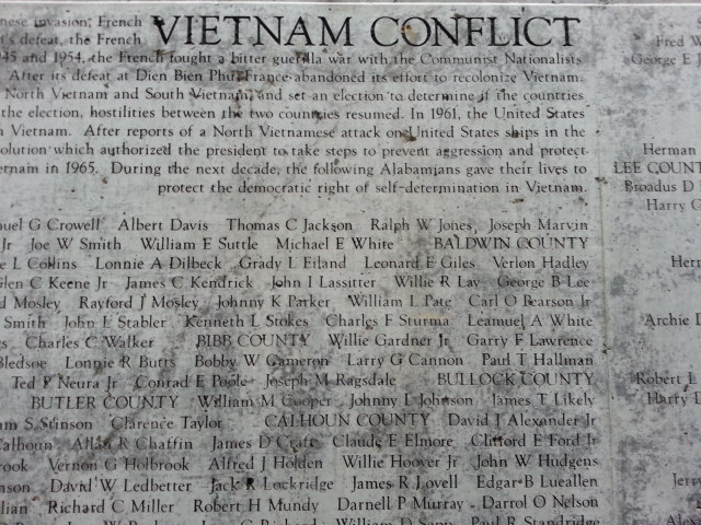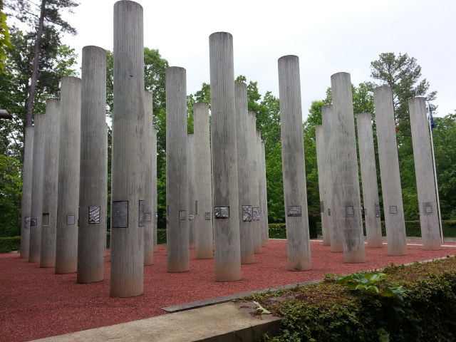 Click on thumbnails for larger view. This cache is in the Alabama Veterans Memorial Park only 100 yards off the interstate. It may be the most beautiful and peaceful 22 acres you have ever seen and a fitting tribute to our fallen soldiers who are the true heroes of this country. You may park in their parking lot. Read the sign at the entrance. It says "invitees only" but in the next sentence it says visitors are welcome, strange wording. Be sure and see the memorial name room. All soldiers from Alabama who died in U.S. wars have their name listed on the walls of this gigantic room. I am just one of 11 thousand or so who has a relative listed here. My uncles name appears on the wall in the World War 2 section. The names are listed in groups by the county the soldier was from. If you are wearing a hat please remove it when you enter the name room. Even if you don't want to find the cache this place is worth a visit. There is no admission and no one is at the office except on weekends.