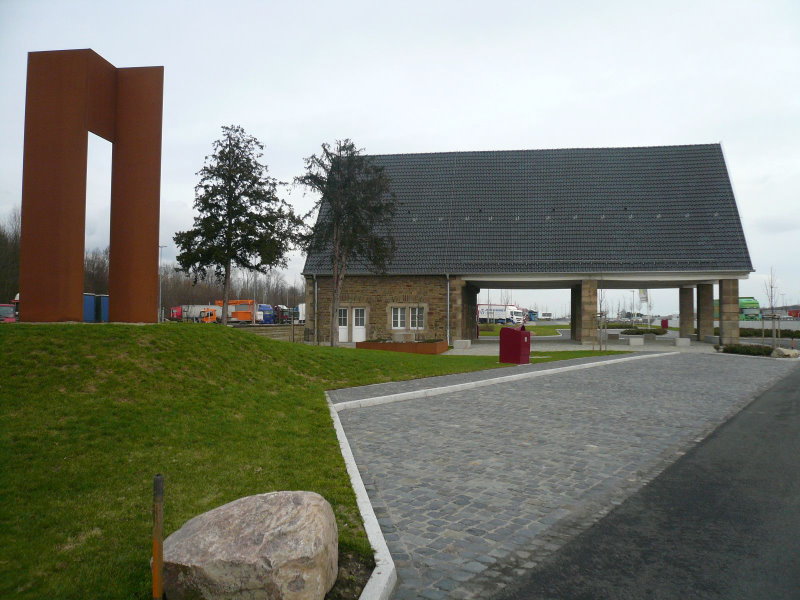 Wo früher die Tankstellenkasse und der Tankstellenshop waren, steht heute ein Altar aus gerostetem Korteenstahl.