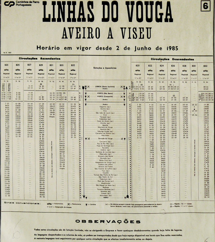 Em 1985, existiam duas circulações em cada sentido (menos uma que em 1981), demorando a viagem entre Sernada e Viseu cerca de 2h30min.