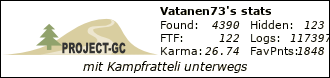 (? Sternchen bei GCVote) Meine Cache darf man mit GCVote benoten, um anderen Geocacher zu zeigen welche Cache es wert sind aufgesucht zu werden.