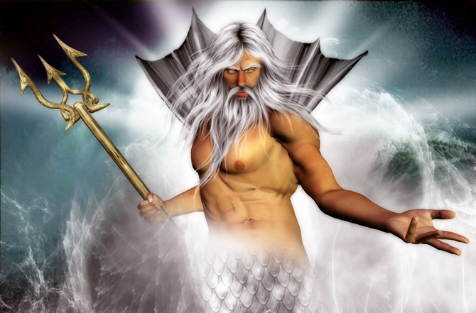 Neptuno - Deus do Mar ou Poseidon, sua equivalência na cultura Grega, filho do deus Saturno e irmão de Júpiter e de Plutão.