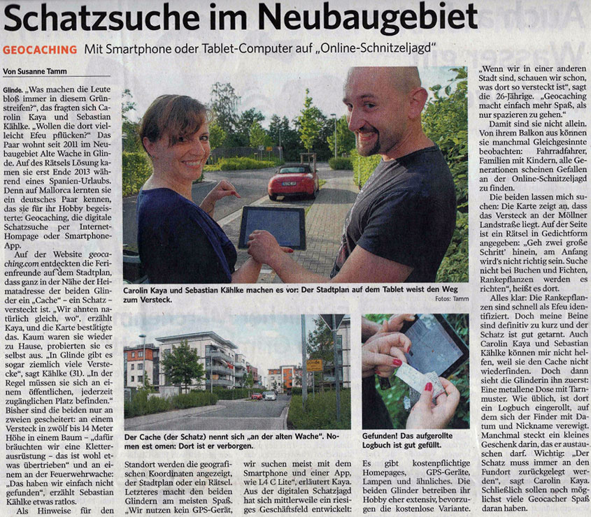 Dank der Bergedorfer Zeitung ist der Cache nun sehr bekannt. Ein Artikel über Geocaching wurde am 17.6.2014 Seite 14 veröffentlicht inkl. genauer Details, wo man den Cache findet. Vielen Dank Bergedorfer Zeitung für die Werbung. *grins*