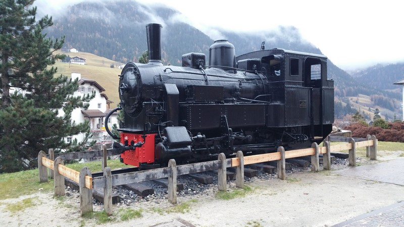 In Stage 1 (start point and old train station of Ortisei) you can still see the old locomotive.