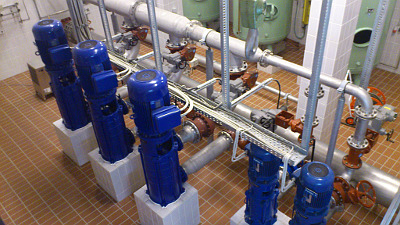 - 2 Grundlastpumpen, Druck- und Durchflussabhängig geregelt, Förderleistung je 16 Liter pro Sekunde