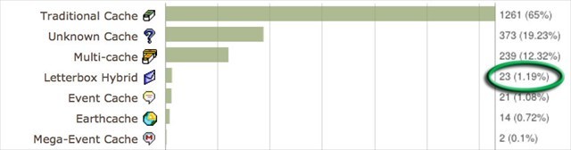 Bekijk uw statistieken en controleer of u minstens 22 verschillende LETTERBOX-caches gevonden heeft.