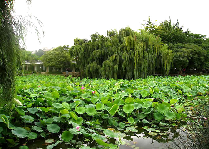 The park consists, in effect, of a group of 4 small sub-lakes linked by bridges in the traditional style. The lake was originally a water reservoir for the city. The banks are covered with an abundance of willow trees and dotted with a variety of vibrant lotuses and brightly painted pavilions on the islands inside the park. The local populace enjoying themselves by exercising in various specialist groups all add to the appeal of the park.
