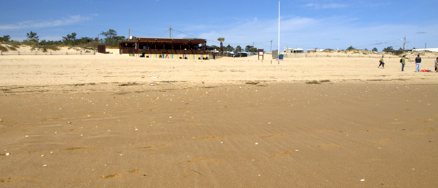 Como equipamentos e serviços de apoio esta praia conta com restaurantes e bar e aluguer de toldos durante a época balnear.