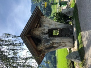 In der Nacht zum 22. Juli 2012 gab es einen Schicksalsschlag für den Baum. 3 junge Vandalen haben in Schlitters einen Traktor unbefugt in Betrieb genommen. Sie fuhren damit auf dem Radweg nach Fügen und stürzten den Baumstumpf mit dem Frontlader in den Wassergraben. Der Vorfall wurde zur Anzeige gebracht und der Baum später wieder aufgestellt. Die geschichtsträchtige Silberpappel diente dann noch 1,5 Jahre als Unterschlupf für Wanderer und Radfahrer. Dann wurde der Baum im Frühjahr 2014 umfunktioniert zu der heutigen Bestimmung: Es wurde eine religiöse Wirkstätte eingerichtet und schmiedeeiserne Türen und Fenster angebracht. Heute bietet die alte Silberpappel zwar keinen Unterschlupf mehr, freuen kann ich mich trotzdem über diesen schönen Ort.