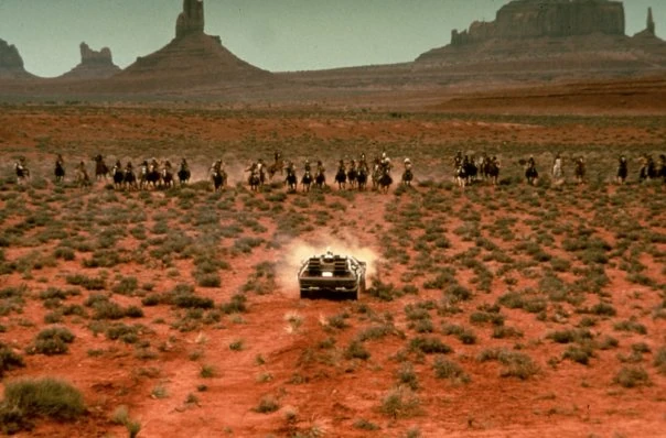 After a few minutes, when he uses the DeLorean and arrives in 1885, an actual tribe of Native Americans is literally coming towards him and it makes for another good scene in this movie.