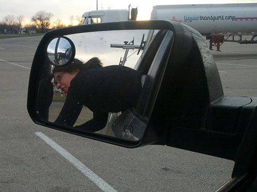- Have the person driving get as close as possible to the lamp post while you hang out the window and lift the skirt as demonstrated here: