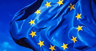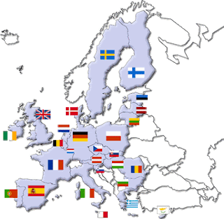 As bandeiras dos 25 países integrantes da União Europeia estão dispostas em torno de um eixo imaginário, representando uma União forte e estável em torno de um objectivo comum, qualidade de vida, segurança, prosperidade económica e igualdade de oportunidades dos cidadãos.