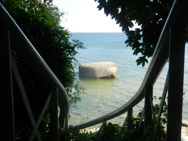 Der Findling Uskam wird auch Klein Helgoland genannt, was auf eine ähnliche rötliche Färbung des Findlings wie die Felsen auf Helgoland zurück zu führen ist. Er liegt auf dem Weg vom Hafen Sassnitz in Richtung Kreideküste, ca. 200m hinter dem Kurplatz in einer Entfernung von 15m im Wasser. Der Findling ist 110t schwer und hat ein Volumen von 41 Kubikmeter mit einem Umfang von 16,6m. Der 5 x 4,4 x 3,6m große Stein besteht aus Halen-Granit.